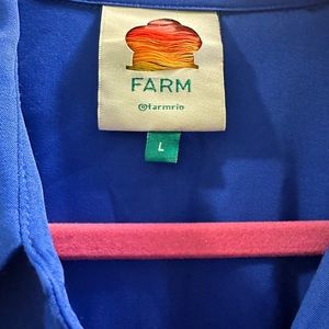Farm Rio Dress. Long Sleeve. Sz LRG. Blue. Appears new. Beading on Belt. MIDI