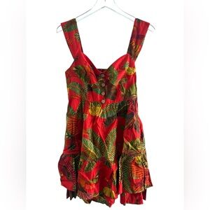 Farm Rio Dress Tropical Toucan Parrot Jungle Linen Sleeveless Red Green Leaf