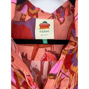 Farm Rio Dress Wild Horses Rose Long Sleeve Chiffon Button Front Orange Sz Small