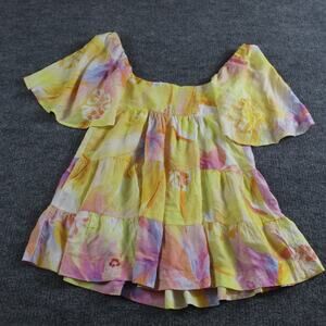 Farm Rio Dress Women Small Mini Floral Off Shoulder Tiered Peasant Boho Tropical