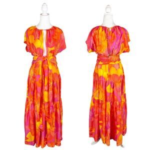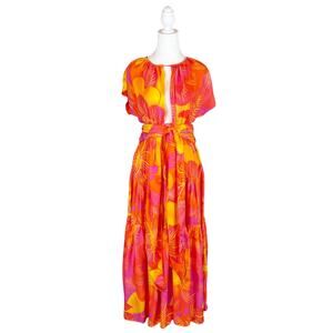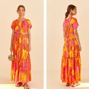 Embrace the essence of summer with the Summer Garden Ombre Maxi Dress from FARM Rio. Crafted from Lenzing™ Ecovero™ Viscose, this dress features a vibrant ombre design and lush botanical patterns. Perfect for beach days or garden parties, the flowing maxi silhouette and lightweight fabric ensure both comfort and elegance. With short sleeves and a cinched waist for a flattering fit, it’s a standout piece in any wardrobe.
