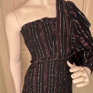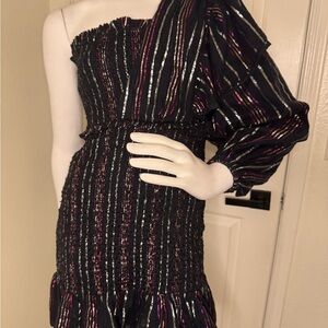 Farm Rio Elegant Black and Pink One-Shoulder Dress
