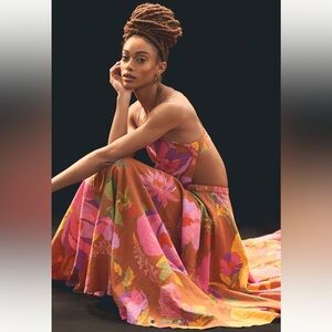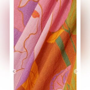 Farm Rio Embroidered Open-Back Dress! BEAUTIFUL linen dress with a big flowy skirt. Perfect for weddings! Like new, only worn once✨ Straps were quickly altered for fit, but original stitching is still attached, you can just take out the hot pink quick stitch if needed and all is back to normal. Website description below…