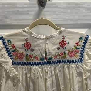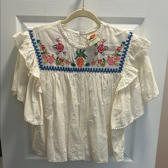 Farm Rio Embroidered White Eyelet Ruffle Top