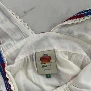 Farm Rio Embroidered tiered maxi dress Linen Blend Sz M Coastal Boho Chic Artsy