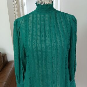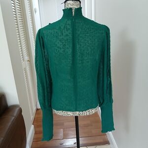 Farm Rio Emerald Ruffle Long Sleeve Blouse. this blouse is missing the interior tank top. Size XS. Invisible zipper at center- back