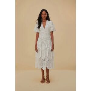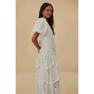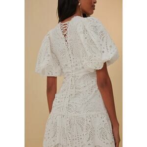 Farm Rio Eyelet Puff Sleeve Midi Dress