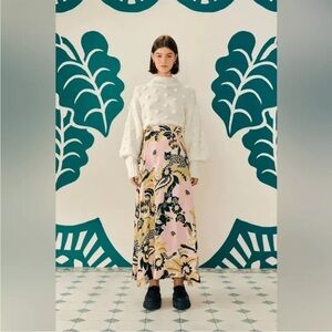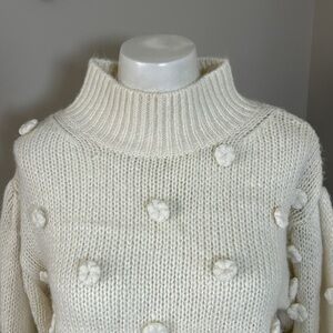 Farm Rio Floral Applique Lantern Sleeve Sweater Cream Mock Neck Trendy Sz S