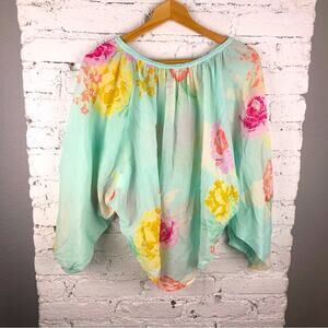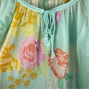 FARM Rio Basel Peasant Gauzy Top. Aqua blue green floral. In a women’s size Medium. In great used condition.