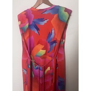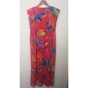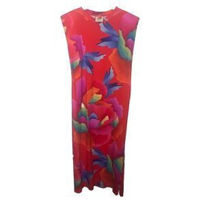Farm Rio Floral Chita Midi T-Shirt Sleeveless Dress XS Multicolor Pink Orange