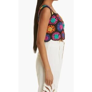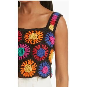 Farm Rio Floral Crochet Crop Top Multicolor Black Knit Boho Festival Tank Top