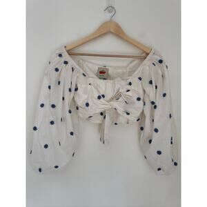 * Tags: farm rio crop top,embroidered cotton blouse,boho puff sleeve top