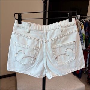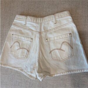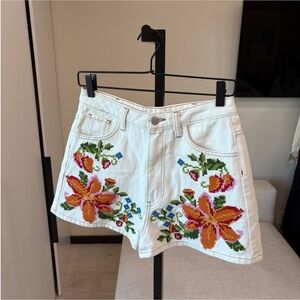 Vibrant floral embroidery on these shorts. High waist design. Perfect for casual outings.