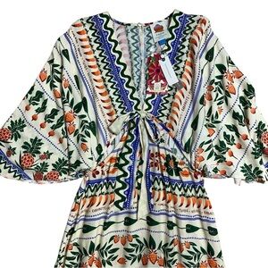 Farm Rio Floral Garden V Neck Kaftan Maxi Cutout Dress Womens S