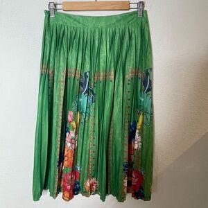 Farm Rio Floral Pleated Midi Skirt Size M Green Lightweight Side Zip Semi Sheer