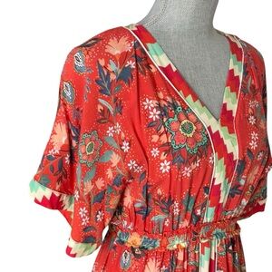Vibrant red dress with floral patterns, perfect for any occasion. Features a flattering fit and eye-catching design. Worn once.