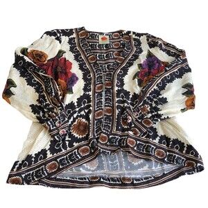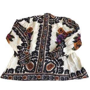 Farm Rio Flower Tapestry Popover Blouse Sz X Small EUC