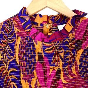 Farm Rio Fruit Dream Yellow Long Sleeve Blouse Vibrant Bohemian Size Small