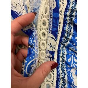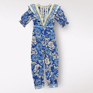 Farm Rio Full of Flowers Jumpsuit Blue Crochet Lace Size M