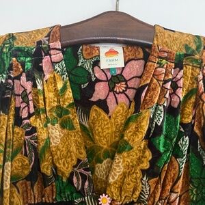 Bought this beautiful dress online, but the size is a bit to small for me, cause it runs right on the chest. It has beautiful details like the flower buttons. The velvet fabric is really soft.