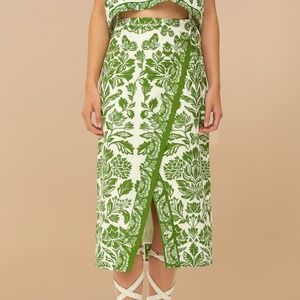 Farm Rio Green Delicate Tapestry Midi Skirt
