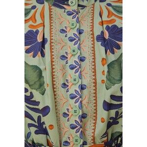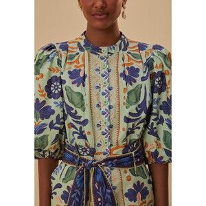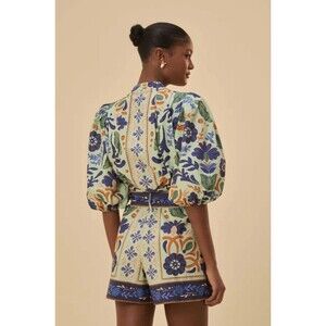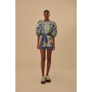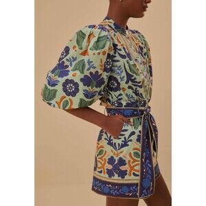 Farm Rio Green Ocean Tapestry Belted Romper, Medium, 100% Cotton New $200
