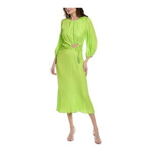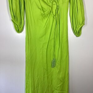 Farm Rio Green Pleated Midi Dress Women’s Boho Vacation Party Cocktail Outfit