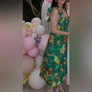 Farm Rio Green Ruffle Midi Dress