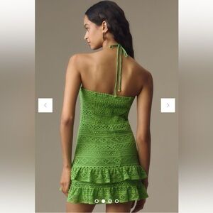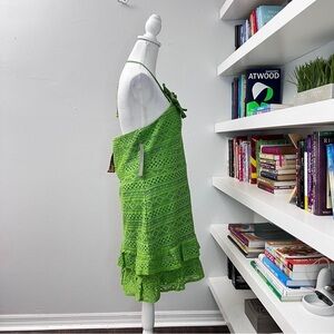 New Farm Rio Halter Crochet Dress Anthropologie Floral Ruffle Mini Green Size XL