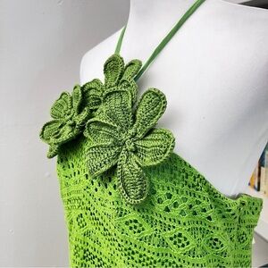 New Farm Rio Halter Crochet Dress Anthropologie Floral Ruffle Mini Green Size XL