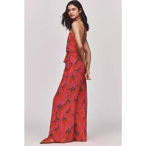 Farm Rio Halter Neck Flowy Wide Leg One Piece Jumpsuit Women's Size XL Red