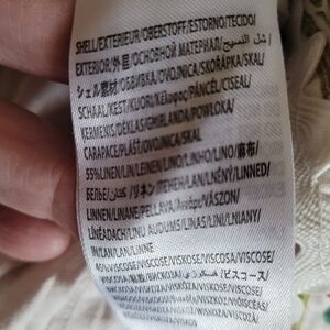 Very good preloved condition. Linen blend. Oversized collar.Puff sleeves. Self-tie belt.Button down front. Side pockets. (3f)