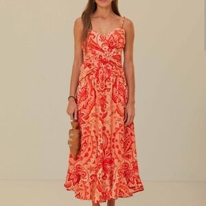 Farm Rio Jaipur Crossed Over Maxi Floral Red Maxi Dress Cruise Resort Wear XL