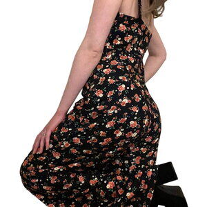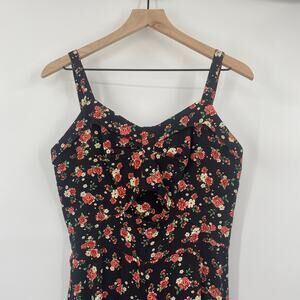 Farm Rio Jumpsuit Ditsy Floral Rose Print Wide Leg Cutout Bodice Black Womens 6