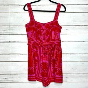 Farm Rio Jungle Scarf Romper Red Linen Blend Size Medium