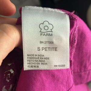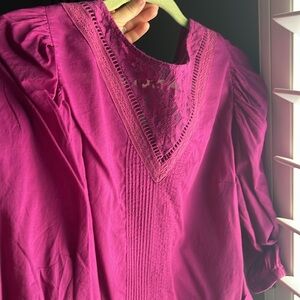 Farm Rio Kelsie Blouse. Lace detail. 3/4 sleeve length. Balloon sleeves. Electric purple. Excellent condition. Smoke free and pet free.