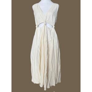 Farm Rio Knotted Cut Out Linen Blend Midi Dress M
