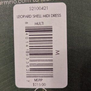 Farm Rio Leopard Shell Midi Dress, Size Medium, 100% Cotton, New with Tags