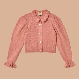 Farm Rio Light Pink Ruffle Knit Cardigan