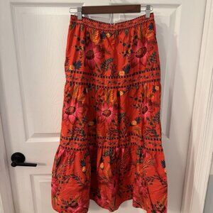 Farm Rio Long Multicolored Red Women's Skirt Boho Festival