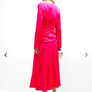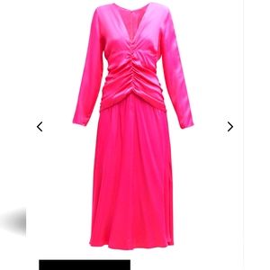Farm Rio gorgeus fushia pink lightweight dress elevated by a ruched waist, midsection which makes this dress elevated and classy