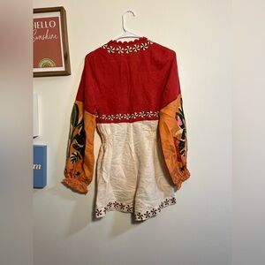 Please see all pics for details. The zipper works perfectly but around it has some fabric pulls and stitch (under the arm) the price reflects the imperfections.
