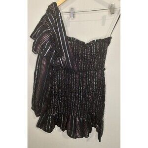 Farm Rio Lurex Stripes Mini Dress Medium NWT Smocked One Shoulder Sparkle
