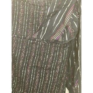 This stunning black and glittery Farm Rio dress is a must-have for any fashion-forward woman. With a one-shoulder neckline and ruffle accents, this mini dress is perfect for any occasion, from parties to weddings. Made from a blend of polyester and cotton, this dress is comfortable and stylish, with long sleeves and a pullover closure.