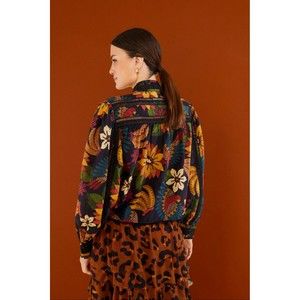 Farm Rio Macaw Ballet Blouse XL Ladder-Stitch Neck-Tie Floral Tropical Print