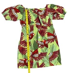 Farm Rio Macaw Print Off Shoulder Baby Doll Dress SZ P = Small Multicolor GUC