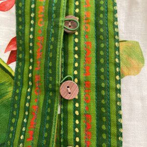 Absolutely adorable, another beautiful brightly colors dress from Farm Rio. Runs very small. Small-breasted only. It's slim-fitting. Wooden buttons, criss-cross wide straps.