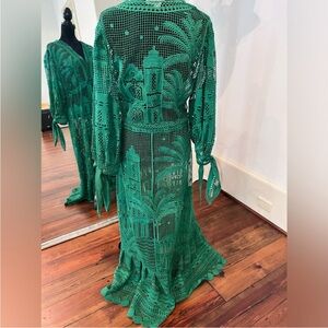Worn once Farm Rio maxi dress. Beautifully made and designed. Comes with a full length slip underneath. Beads at the tie waist(see picture). Just a fabulous dress ready for a new home!