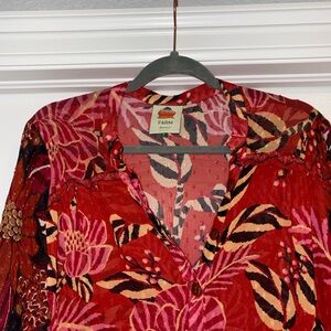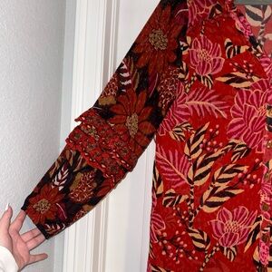 Embrace elegance with this stunning floral red maxi dress. Perfect for any occasion, it features a vibrant design that stands out. The stress is slightly sheer.