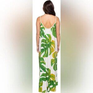 Farm Rio easy, flowy maxi dress featuring twisted cotton rope straps with accent beading. Designed with a shirred neckline and ruffle hem for an effortless, breezy silhouette. Lightweight and comfortable boho Size XXS